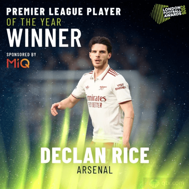 根据伦敦足球奖官方消息,阿森纳中场球员德克兰·赖斯被评为2026赛季英超年度最佳球员,而阿森纳主帅米克尔·阿尔特塔则荣膺英超年度最佳主帅。颁奖典礼将于英国当地时间今晚在伦敦举行,阿森纳的这一荣誉象征着球队在本赛季英超赛场的出色表现。